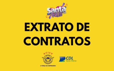 Espécie: Contrato nº 06/2026; Processo Administrativo nº 06/2026; Contratado: SAM BUSINESS LTDA, CNPJ: 22.644.513/0001-78; Objeto: contratação do artista “DJ JIRAYA UAI”, para realização de show musical no dia 17/02/2026, no Carnaval Santa Folia/2026, na cidade de Santa Vitória / MG, conforme Termo de Referência; Valor Global: R$ 300.000,00; Data de assinatura do Contrato: 08/01/2026; Vigência: até 08/03/2026. Signatários: pelo Contratante: Daniella Miranda Queiroz e pela Contratada: Santiago Ferraz de Maia.